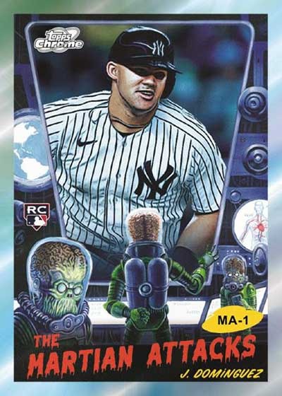 The comprehensive insert program blends innovative space-themed concepts with traditional Chrome insert formats spanning multiple rarity levels and creative chase opportunities. Planetary Pursuit returns as the signature insert featuring 10 players with individual cards representing the Sun and each planet creating 100 total cards (10 players × 10 celestial bodies) where rarity increases with planetary distance from the Sun making Sun versions most common while outer planets like Neptune and Pluto become significantly scarcer. Find Cosmic Chrome inserts on eBay. Players featured include Aaron Judge, Gunnar Henderson, Yoshinobu Yamamoto, Elly De La Cruz, Jackson Holliday, Paul Skenes, Shota Imanaga, Shohei Ohtani, Jackson Chourio, and Juan Soto creating comprehensive planetary collecting challenges. The Martian Attacks insert pays homage to Topps' iconic Mars Attacks entertainment brand featuring five extremely tough base versions of Jasson Dominguez with Black Eclipse Refractors /10, Red Flare Refractors /5, and Superfractors 1/1 celebrating The Martian's nickname through creative crossover artwork. Stars in the Night falls one per hobby box featuring 25 players with Black Eclipse Refractors /10, Red Flare Refractors /5, and Superfractors 1/1 parallels. Stella Nova represents a case hit featuring 15 subjects with Orange Galactic Refractors /25, Black Eclipse Refractors /10, Red Flare Refractors /5, and Superfractors 1/1. Supernova serves as super short print featuring 25 players with Black Eclipse Refractors /10, Red Flare Refractors /5, and Superfractors 1/1 creating extreme scarcity. Common insert sets include Astrologically Aligned (25 cards), Galactic Greatness showcasing legends (25 cards), Into the Cosmos (25 cards), Launched Into Orbit celebrating power hitters (25 cards), Star Command highlighting pitchers (25 cards), and Extraterrestrial Talent (25 cards) all featuring Gold Interstellar /50, Orange Galactic /25, Black Eclipse /10, Red Flare /5, and Superfractors 1/1 parallels with select sets including Green Space Dust /75 versions. New Starfractor insert debuts featuring 100 players with Orange Galactic Refractors /25, Black Eclipse Refractors /10, Red Flare Refractors /5, and Superfractors 1/1 creating substantial modern player coverage across multiple rarity tiers.