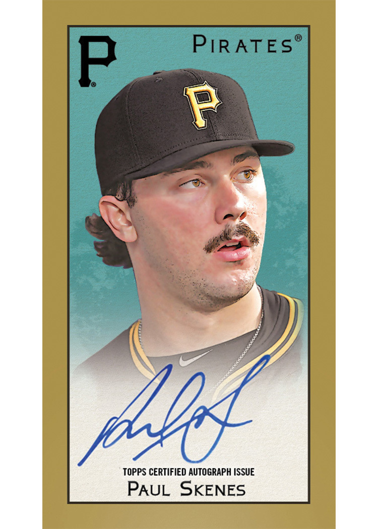 The set features 79 on-card autographs spanning current stars, rookies, retired legends, and Hall of Famers. Signature subjects include Shohei Ohtani, Aaron Judge, Roki Sasaki, Dylan Crews, James Wood, Sandy Koufax, Derek Jeter, Ken Griffey Jr., and Mike Trout. Find T205 autographs on eBay. Autographs fall approximately once every four single boxes, with cartons guaranteeing one signature. Every autograph maintains the vintage aesthetic with on-card signatures complementing the timeless gold border design, creating a premium collecting experience that bridges baseball's past and present.