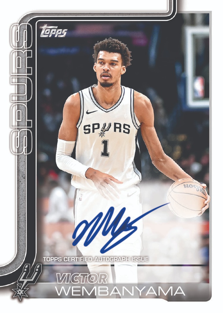 Autograph and memorabilia content dominates the product with guaranteed hits in every hobby box and exceptional value in jumbo configurations. The headline attraction is Victor Wembanyama's first licensed autograph cards appearing in Flagship Real One Autographs, marking a monumental moment for basketball card collectors as the Spurs superstar finally appears in fully licensed products. Wembanyama joins established veterans including LeBron James, Stephen Curry, Kevin Durant, Jayson Tatum, Chet Holmgren, and legends like Allen Iverson, Magic Johnson, Larry Bird, and Shaquille O'Neal across multiple autograph sets. Find 2025 Topps Basketball autographs on eBay. Flagship Real One Autographs carry comprehensive parallel structures with Gold Rainbow (/50), Orange Rainbow (/25), Black Rainbow (/10), Red Rainbow (/5), and FoilFractor (1/1) variations across both veteran and rookie checklists. The product's 45th anniversary celebration inspires four distinct autograph sets based on the iconic 1980-81 Topps Basketball design, including Base Autographs, Chrome Autographs, Rookie Autographs, and Triple Autographs, all carrying numbered parallel structures that create rainbow-chasing opportunities across vintage-inspired designs. Additional autograph sets include Contemporary Marks, Havoc Marks, Marks of Excellence, New Applicants Autographs, Rookie Photo Shoot Autographs with Red (/5) and Platinum (1/1) parallels, Signed and Sealed encapsulated signatures, Topps Notch Signatures, Dual Rookie Photo Shoot Autographs, and Retail Rush Signatures with Flash Drop (/50), Cart Load (/25), and Doorbuster (1/1) variations. Memorabilia cards provide additional hit content with Flagship Real One Relics, the return of Own The Game after nearly two decades, Franchise Fabrics showcasing jersey swatches from featured teams, Rise to the Occasion highlighting clutch performers, Rookie Roundball Remnants focusing on first-year players, Swish and Stitch Relics, and Woven Wonders all carrying rainbow parallel structures. The combination of Wembanyama's licensed debut, extensive autograph variety, and comprehensive memorabilia content creates an unprecedented collecting opportunity that celebrates Topps' return to fully licensed basketball cards.