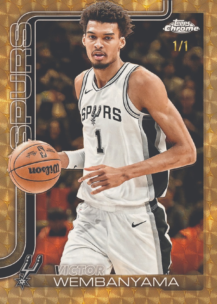 Multiple insert sets showcase basketball's elite talent through distinctive designs and varying scarcity levels, with several sets making their basketball debut after successful runs in other sports. The ultra-scarce Helix insert represents one of the product's toughest chases, appearing as Superfractor-only variations that fall once every several cases and generate tremendous excitement whenever they surface in break videos. Fanatical inserts arrive from 2025 Topps Chrome baseball with dynamic emotional photography that captures players' most intense moments, available exclusively in mega and blaster boxes with Gold (/50), Orange (/25), Black (/10), Red (/5), and Superfractor (1/1) parallels creating tiered collecting opportunities. Ultra Violet All-Stars serve as the hobby-exclusive case hit, featuring original artwork with eccentric designs incorporating two images of each player in Superfractor-only form that represents one of the product's ultimate pursuits. Find Topps Chrome basketball inserts on eBay. Additional Superfractor-only SSP inserts include Radiating Rookies, Advisory, Paradox, Let's Go, Glass Canvas, Patented, Finals, and Rock Stars, which revitalizes the classic 1997-98 theme with modern chromium stock. Regular inserts with numbered parallel structures include Youthquake, Sleek Finishers, Destiny, Instinct, Voices, Loading..., Generation Rising, Clutch Gene, Xs And Whoas, Go Time, Ball Of Duty, Inspirational, Activators, and Serenity, all featuring extensive parallel options including Aqua (/199), Blue (/150), Green (/99), Purple (/75), Gold (/50), Orange (/25), Black Geometric (/10), Red (/5), Red Geometric (/5), White Geometric (/2), and Superfractor (1/1) variations. Tall Tales inserts offer a vintage comic book aesthetic with identical parallel structures, while Go Time and Serenity feature RayWave and Pulsar Refractors alongside the standard numbered progression, creating visual distinction through alternative parallel treatments.