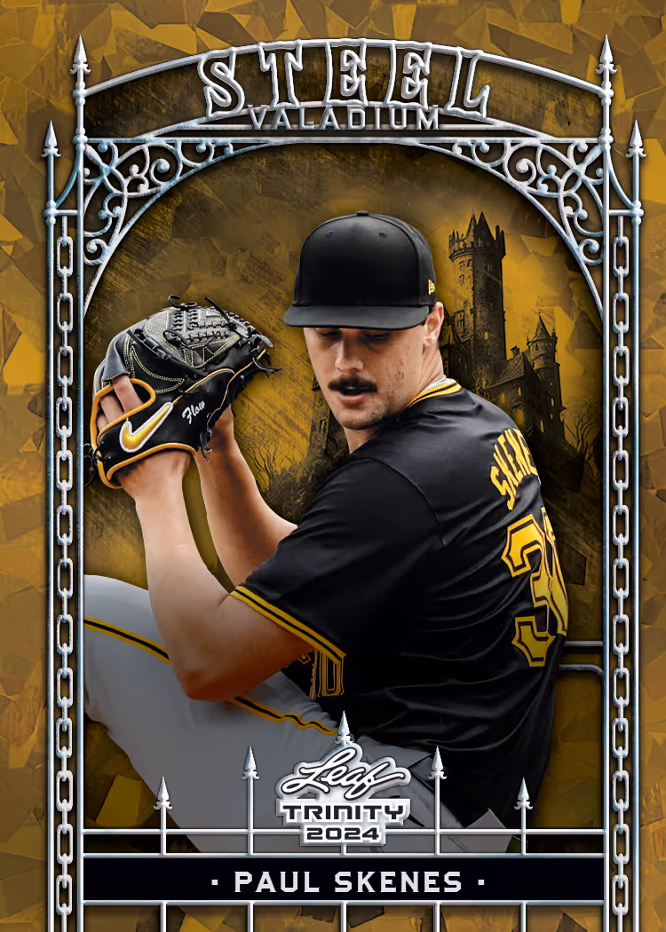 2024 Leaf Trinity Mega Box Baseball delivers a streamlined retail experience focused on premium Steel inserts and prospect memorabilia cards. Released August 29, 2025, this straightforward offering features a 99-card base set, one Rookie Relics memorabilia set, and the spectacular Steel insert chase. Shop 2024 Leaf Trinity Mega Box on eBay. Each 10-card box guarantees one Rookie Relics card and two Steel inserts, ensuring hits in every break. The base checklist spans generations from Hall of Famers Ken Griffey Jr., Rickey Henderson, and Pete Rose to current rising stars Dylan Crews and Nick Kurtz alongside elite prospects Travis Bazzana, Charlie Condon, and Druw Jones. With 67 players featured in Rookie Relics including top prospect Jesus Made, collectors have accessible memorabilia opportunities. The Steel insert chase dominates the product with all 99 base players receiving spectacular foil treatment across 60 different variations per player, ranging from Silver (/299) through multiple 1/1 versions, creating extraordinary rarity and collecting depth.