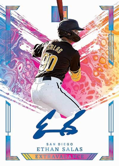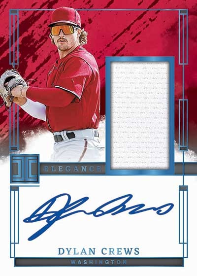 Autographs dominate the configuration with five guaranteed on-card signatures per nine-card box across multiple themed sets. Find Panini Impeccable autographs on eBay. Elegance Prospect Jersey Autographs combine on-card signatures with game-worn swatches from top prospects including Dylan Crews, Roman Anthony, and Ethan Salas, all numbered to 99. Canvas Creations Signatures feature horizontal designs with artistic layouts showcasing legends and prospects. Extravagance Autographs display the product's most colorful designs with vibrant backgrounds numbered to 49 or 99 depending on the subject. Illustrious Ink delivers premium on-card autographs across varied print runs. Immortal Ink honors baseball legends with on-card signatures numbered to 35 or 49. Impeccable All-Stars Signatures celebrate elite players with extremely low print runs from /6 to /11. Impeccable Cooperstown Signatures feature Hall of Famers and legends with print runs ranging from /5 to /22, creating ultra-rare chase autographs. Impeccable Lumber Signatures pair on-card autographs with game-used bat pieces numbered from /25 to /49. Additional autograph sets include Base Autographs and thematic variations, all featuring on-card ink rather than stickers. The combination of five autographs per box, exclusively on-card signatures, and multiple themed sets with low print runs creates exceptional premium content despite the unlicensed format, with subjects ranging from Ken Griffey Jr. and George Brett to top 2024 prospects.