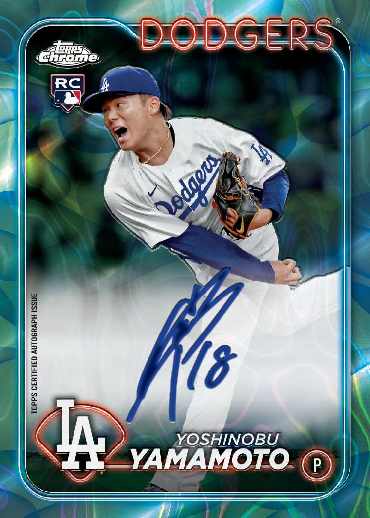 The autograph content in 2024 Topps Chrome Update Series Baseball delivers exceptional value across four box formats with one auto per standard hobby box, three per jumbo box, and two per breaker box featuring a comprehensive checklist that spans current stars, rookies, and legends. Find 2024 Topps Chrome Update Series autographs on eBay featuring Chrome Baseball Update Series Autographs with sticker signatures from current players like Jackson Holliday, Paul Skenes, Shota Imanaga, Yoshinobu Yamamoto, Wyatt Langford, Mason Miller, and Colton Cowser alongside legends. Chrome Rookie Autographs Lava Lamp showcase the 2024 rookie class with distinctive color-gradient parallels featuring Magenta/Purple (/299), Aqua/Blue (/175), Blue/Green (/125), Green/Yellow (/85), Gold/Orange (/35), Orange/Black (/15), and Black/Red (/8) variations that create visually stunning autographed rainbow opportunities. Chrome Legends Autographs feature retired stars with Orange (/25), Black (/10), Red (/5), Printing Plates (1/1), and Superfractor (1/1) parallels and are available in more configurations this year beyond just breaker boxes. 2024 All-Star Game Autographs celebrate the Midsummer Classic with X-Fractors (/125), Gold (/50), Orange (/25), Black (/10), Red (/5), and Superfractor (1/1) variations. Chrome All-Etch Autographs and Chrome All-Etch Rookie Rush Autographs feature acid-etched designs with Gold (/50), Orange (/25), Black (/10), Red (/5), and Superfractor (1/1) parallels. Future Stars Autographs highlight emerging talent with Orange (/25), Black (/10), Red (/5), and Superfractor (1/1) variations. Dual Autographs (/10) and Triple Autographs (/10) pair multiple players with Red (/5) and Superfractor (1/1) parallels. The crown jewel of the autograph content is the MLB Debut Patch Autographs, with just over 250 different players and every single card numbered 1/1, featuring patches from players' MLB debut games between June 1, 2023 and May 24, 2024, including Jackson Holliday, Paul Skenes, Elly De La Cruz, Jackson Chourio, Jackson Merrill, Shota Imanaga, Yoshinobu Yamamoto, Wyatt Langford, Colton Cowser, Jordan Lawlar, Evan Carter, and Pete Crow-Armstrong.
