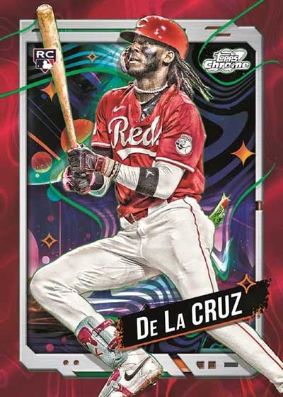 The comprehensive insert program blends innovative space-themed concepts with traditional Chrome insert formats spanning multiple rarity levels and creative chase opportunities. Planetary Pursuit returns as the signature insert featuring 10 players with individual cards representing the Sun and each planet creating 100 total cards (10 players × 10 celestial bodies) where rarity increases with planetary distance from the Sun making Sun versions most common while outer planets like Neptune and Pluto become significantly scarcer. Find Cosmic Chrome inserts on eBay. Players featured include Aaron Judge, Gunnar Henderson, Yoshinobu Yamamoto, Elly De La Cruz, Jackson Holliday, Paul Skenes, Shota Imanaga, Shohei Ohtani, Jackson Chourio, and Juan Soto creating comprehensive planetary collecting challenges. The Martian Attacks insert pays homage to Topps' iconic Mars Attacks entertainment brand featuring five extremely tough base versions of Jasson Dominguez with Black Eclipse Refractors /10, Red Flare Refractors /5, and Superfractors 1/1 celebrating The Martian's nickname through creative crossover artwork. Stars in the Night falls one per hobby box featuring 25 players with Black Eclipse Refractors /10, Red Flare Refractors /5, and Superfractors 1/1 parallels. Stella Nova represents a case hit featuring 15 subjects with Orange Galactic Refractors /25, Black Eclipse Refractors /10, Red Flare Refractors /5, and Superfractors 1/1. Supernova serves as super short print featuring 25 players with Black Eclipse Refractors /10, Red Flare Refractors /5, and Superfractors 1/1 creating extreme scarcity. Common insert sets include Astrologically Aligned (25 cards), Galactic Greatness showcasing legends (25 cards), Into the Cosmos (25 cards), Launched Into Orbit celebrating power hitters (25 cards), Star Command highlighting pitchers (25 cards), and Extraterrestrial Talent (25 cards) all featuring Gold Interstellar /50, Orange Galactic /25, Black Eclipse /10, Red Flare /5, and Superfractors 1/1 parallels with select sets including Green Space Dust /75 versions. New Starfractor insert debuts featuring 100 players with Orange Galactic Refractors /25, Black Eclipse Refractors /10, Red Flare Refractors /5, and Superfractors 1/1 creating substantial modern player coverage across multiple rarity tiers.
