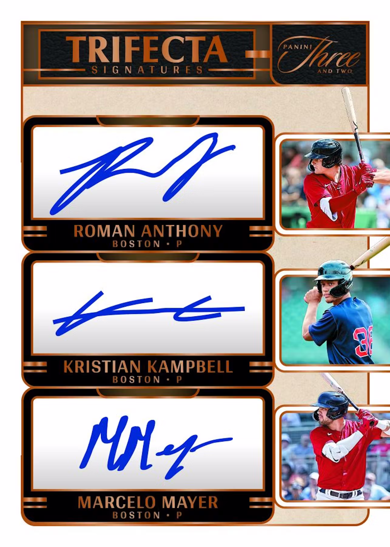 | Trifecta Signatures | 8 | Marcelo Mayer/Roman Anthony/Kristian Campbell | Boston Red Sox | ✓ | — | — |