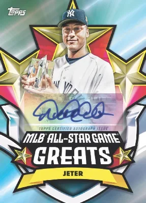 Autographs span all three insert themes with 86 total signers including baseball immortals and current superstars. All-Star Game Greats Autographs feature 43 players numbered to 50 including Derek Jeter, Cal Ripken Jr., Ken Griffey Jr., Mike Trout, and Roger Clemens. Classic Swings Autographs include 24 signatures highlighting iconic hitters like Albert Pujols, Ichiro, George Brett, and Fernando Tatis Jr. Find All-Star Game autographs on eBay. Homegrown Heroes Autographs celebrate Atlanta with 19 signatures including Chipper Jones, Greg Maddux, Tom Glavine, John Smoltz, and Ronald Acuña Jr. All-Star Game Greats Relics feature 42 game-worn memorabilia cards, while 32 All-Star Game Greats Autographed Relics numbered to 25 combine signatures with event-worn swatches from stars like Mike Trout, Shohei Ohtani, Mookie Betts, and Bobby Witt Jr.