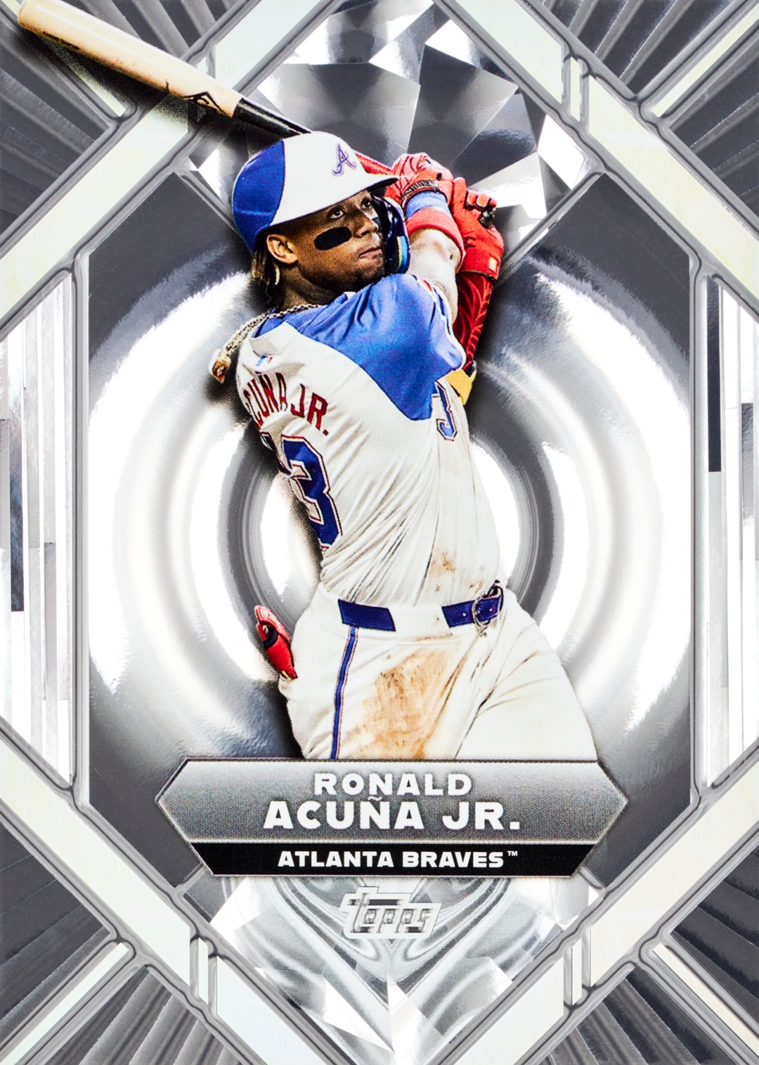 Insert content focuses on premium relic cards and ultra-rare chase elements rather than traditional non-auto inserts. The returning super-short-print Liquid Silver insert captures stunning player imagery with liquid metallic effects, featuring the breathtaking Liquid Gold parallel (1/1) that commanded $50,000 for a Paul Skenes in 2024. Preeminent Pieces deliver oversized game-used memorabilia numbered to 10, with new Dual (/5) and Triple variations debuting in 2025 alongside Red (/5) and Gold (1/1) parallels. Single-Player Booklets (/25) and Dual-Player Dual-Relic Booklets (/10) showcase premium game-worn swatches in elaborate multi-panel formats. The new base set represents the first time Diamond Icons includes non-hit cards, with one base card or parallel per box featuring the product's signature elegant design across the 100-card checklist. All relic cards maintain extreme scarcity with print runs of 25 or fewer, ensuring every insert delivers premium collectibility worthy of the Diamond Icons legacy.