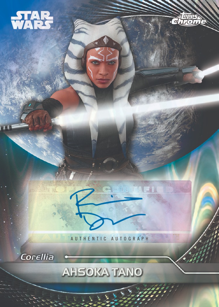 Autograph content anchors the premium hit pursuit in 2025 Topps Star Wars Hyperspace, featuring the actual actors and actresses who brought the galaxy's most beloved characters to life across films and television series. The autograph structure maintains the challenging two-per-case distribution that has defined recent Star Wars chrome releases, making every signature discovery feel meaningful regardless of the specific parallel level. Single Autographs form the backbone of the signing lineup with Pulsar Refractors falling once per 167 packs, Gold Galactic Dust Refractors at 1:263 packs, Hyperlanes Refractors at 1:220 packs, Red Hyperlanes Refractors at 1:710 packs, and Superfractors numbered to one copy per card falling once per 3,572 packs. The signing lineup spans the entire Star Wars timeline from the prequel trilogy through the original trilogy, the sequel era, and the expansive live-action television series that have expanded the universe in recent years. Original trilogy icons including Mark Hamill as Luke Skywalker, Harrison Ford as Han Solo, Carrie Fisher as Princess Leia, and Billy Dee Williams as Lando Calrissian represent the foundation of Star Wars autograph collecting, their signatures carrying enduring appeal across both vintage and modern formats. Find 2025 Topps Star Wars Hyperspace autographs on eBay featuring your favorite characters with the distinctive Hyperspace refractor treatment. Prequel trilogy signers include Natalie Portman as Padme Amidala, Ewan McGregor as Obi-Wan Kenobi, Hayden Christensen as Anakin Skywalker, and Ahmed Best as Jar Jar Binks, while sequel era representation features Daisy Ridley as Rey, with original trilogy characters appearing through their sequel incarnations. The Mandalorian timeline receives extensive coverage with Pedro Pascal as The Mandalorian, Katee Sackhoff as Bo-Katan Kryze, Giancarlo Esposito as Moff Gideon, Emily Swallow as The Armorer, Temuera Morrison as Boba Fett, Rosario Dawson as Ahsoka Tano, and Natasha Liu Bordizzo as Sabine Wren, reflecting the critical and commercial success of the Mandalorian-era series that have dominated Star Wars television since 2019. Additional television signers include Ming-Na Wen as Fennec Shand, Timothy Olyphant as Cobb Vanth, Moses Ingram as Reva, and Jennifer Beals as Garsa Fwip. Recent Star Wars projects are well-represented with Jude Law as Jod Na Nawood from Skeleton Crew, Lee Jung-jae as Jedi Master Sol from The Acolyte, Carrie-Anne Moss as Jedi Master Indara, Robert Timothy Smith as Neel, Mary Elizabeth Winstead as Hera Syndulla, and Kyriana Kratter as KB. Other notable signers include Alden Ehrenreich as young Han Solo, Anthony Daniels as C-3PO, Ashley Eckstein as Ahsoka Tano, Joel Edgerton as Owen Lars, Emilia Clarke as Qi'ra, Keira Knightley as Sabe, Ivanna Sakhno as Shin Hati, Ray Park and Sam Witwer as Darth Maul in different contexts, and Taika Waititi as IG-11. Theme-specific autograph sets include Moon of Mandalore, There's Always A Bigger Fish, and Galactic Eras, each featuring their own parallel structures that range from accessible Pulsar Refractors to the ultra-rare Superfractors that represent the ultimate chase for character-specific autographs.