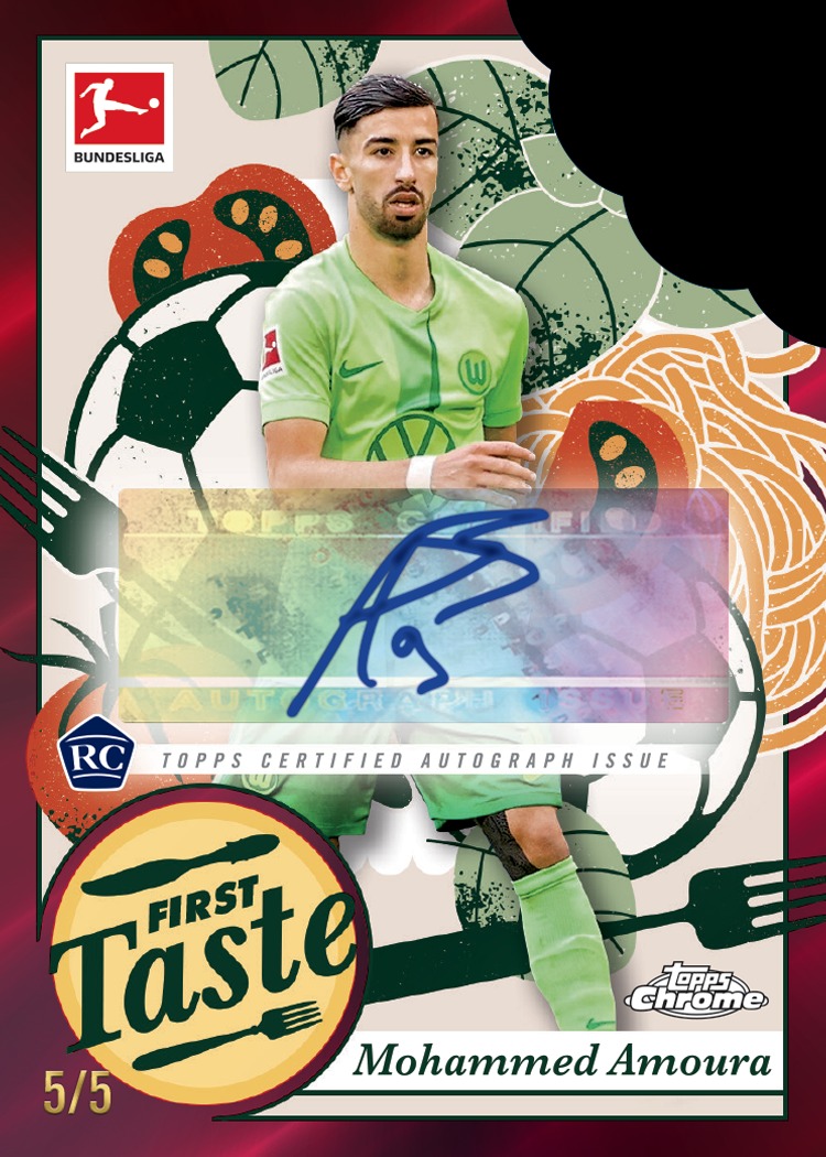 Autograph content flows generously through 2024-25 Topps Chrome Bundesliga with one guaranteed signature per hobby box and a comprehensive autograph lineup that spans rookies, veterans, and legends across multiple themed sets. The base autograph set carries over the iconic Chrome design with 14 Refractor parallels that mirror the base set structure, beginning with Green Refractor and Green Lava Refractor at 99 copies and progressing through Yellow Refractor and Yellow Lava Refractor at 75, the special Toppsfractor at 52 copies honoring the Bundesliga season, Gold Refractor and Gold Lava Refractor at 50, Orange Refractor and Orange Lava Refractor at 25, Black Refractor and Black Lava Refractor at 10, Red Refractor and Red Lava Refractor at 5, before culminating in the coveted 1/1 Superfractor. Dual autographs return with Gold Refractor (/50), Orange Refractor (/25), Black Refractor (/10), Red Refractor (/5), and Superfractor (1/1) parallels that create exceptional value by pairing multiple players on single cards. Triple autographs offer even more impressive combinations with Black Refractor (/10), Red Refractor (/5), and Superfractor (1/1) versions that bring together three distinct signatures on premium Chrome stock. The autograph lineup expands through multiple themed insert sets including History is Now Dual Autographs, Ultrabeam Autographs with stunning background designs, BUZZ Autographs that carry over the energetic insert theme, Verve! Autographs showcasing dynamic player action, and First Taste Autographs focusing on debut signatures from the league's newest stars. First Taste Autographs feature Red Refractor (/5) and Superfractor (1/1) parallels that create premium chase options for prospect collectors. The ultimate autograph chase arrives via three special edition 1/1 cards that honor German football greatness: Der Kaiser featuring legendary Franz Beckenbauer celebrating his iconic nickname, Der Musiala showcasing Bayern Munich superstar Jamal Musiala, and Der Wirtz highlighting Bayer Leverkusen star Florian Wirtz. Notable signers span the league's biggest names including Harry Kane, Joshua Kimmich, Jamal Musiala, Florian Wirtz, Xavi Simons, Loïs Openda, Serhou Guirassy, and rising talents like Tom Bischof, Nelson Weiper, and Max Moerstedt—creating autograph content that appeals to collectors of every preference from established veteran collectors to prospect-focused enthusiasts chasing the next generation of Bundesliga superstars.